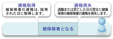 就職した人はその日に被保険者の資格を取得し、退職または死亡した日の翌日に被保険者の資格を失います。